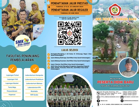 Selamat datang di SMK Negeri 1 Karang Baru! Kami dengan bangga mengumumkan bahwa proses pendaftaran siswa baru untuk tahun ajaran 2024/2025 akan segera dimulai. Berikut adalah informasi penting terkait dengan pendaftaran: